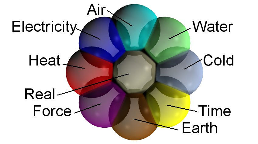 This is an image used in the Elemental Magic section to depict the elemental spheres and how they relate to the Real Sphere (were we live). Elemental Magic comes from these eight spheres or the interaction between two or more of them.